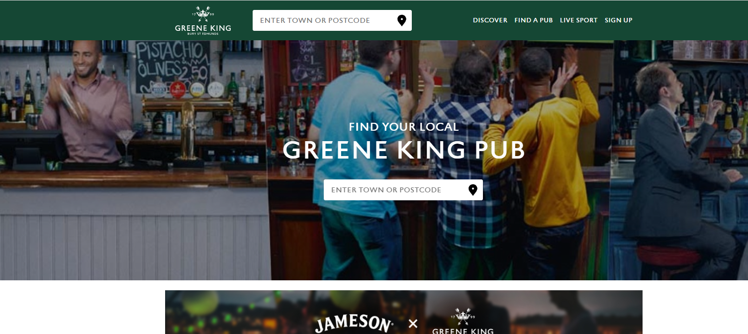 A Chain of Pubs with a Landing page showing the domographic profile of customers enjoying Sport on the TV showing the enjoyment and social side of the pub apart from the large selection of beverages.